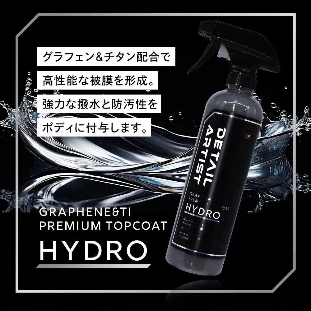 HYDRO(ハイドロ)![]() | ・グラフェン配合 高性能なグラフェンを配合したトップコートです。 ※グラフェンとは:ダイヤモンド並みの強度を持つ炭素素材「グラフェン」を配合したコーテイング剤。 ・高い撥水性とツヤ 優れた撥水効果と深いツヤを与えます。 |