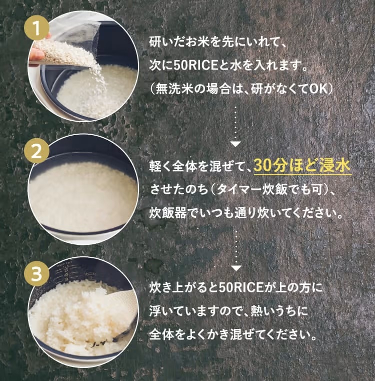 「50ライス」の炊き方は次の通りです。