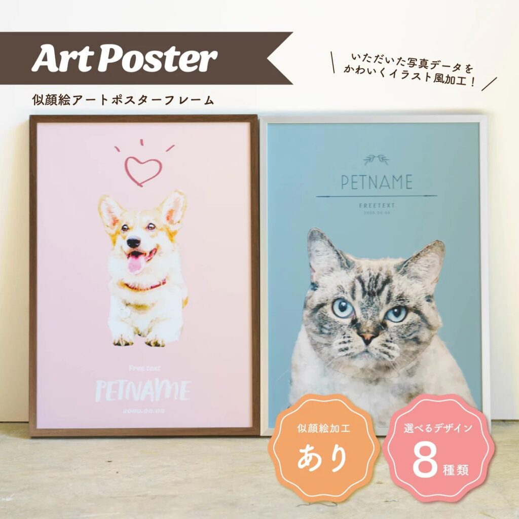 わんちゃん、ネコちゃんのお写真を元に似顔絵アートポスターフレームの作成が可能です☺️