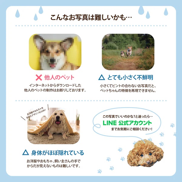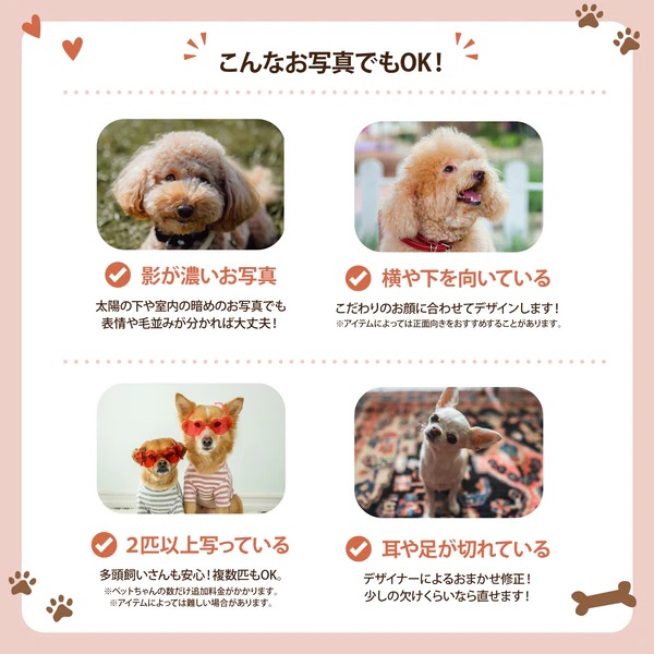 (お顔のみのイラストやパターンをご選択の場合は、ペットの上半身が映っていれば問題ありません。)