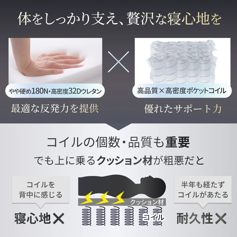 極厚25cm高密度2層ポケットコイルが実現した贅沢な寝心地!